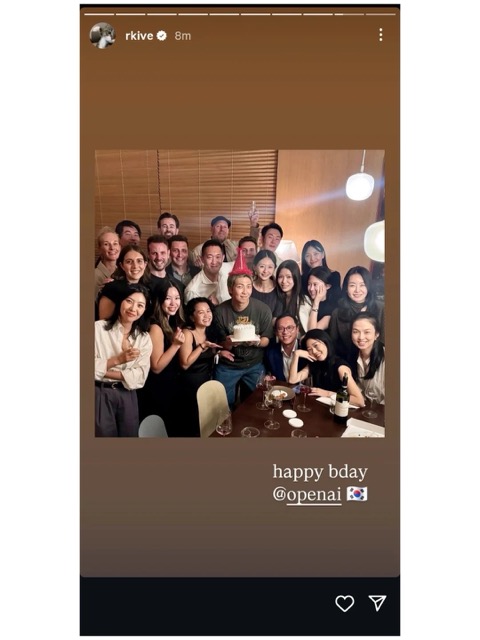Moreover, in September of this year, RM shared a photo showing him celebrating his birthday with OpenAI executives at an informal event marking the launch of the company’s кσяєαn branch. This suggests that he is open to embracing technological progress.