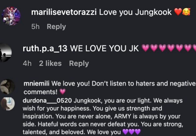 As if being falsely linked to others wasn’t bad enough, malicious people who believe these rumors have even attacked his social media accounts with hateful messages. Since Jungkook doesn’t post anything on his main Instagram, these comments have been redirected to his dog Bam’s account. Fans have spotted horrifying messages wishing ∂єαтн upon Jungkook and his family, alongside hate speech and demands to “leave this person” or “that person” alone.