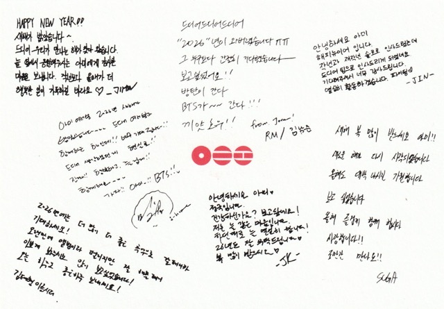 Beyond speculation about the album’s theme, the handwritten New Year’s messages on the back of the letter—written personally by each member—have also become an unmissable highlight for fans around the world. Every word and heartfelt message moved ARMYs to tears, making them long for spring to arrive even sooner. The members’ messages have been translated as follows: