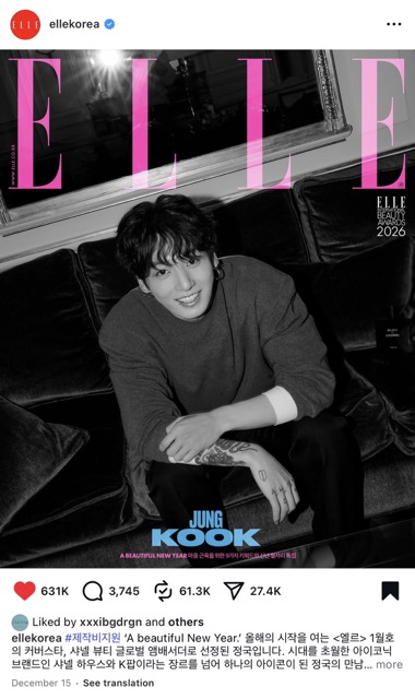 On the 29th of this month, some netizens noticed that G-Dragon had liked a post featuring Jungkook in collaboration with Chanel Beauty on Elle кσяєα’s Instagram.