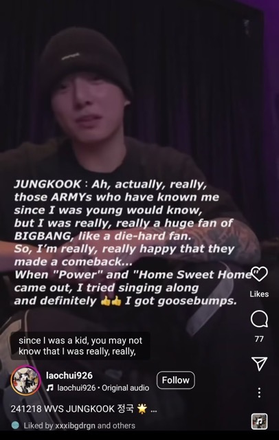 Earlier, on the 21st, he had also liked a reel of Jungkook in which the BTS maknae talked about new music and mentioned BIGBANG’s comeback during a Weverse livestream.