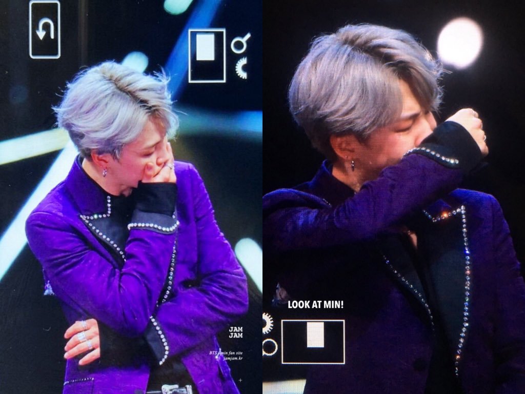 During the same world tour at the Rose Bowl, he also cried while saying goodbye to the audience after the performance. At the 2020 Map of the Soul ON:E online concert, Jimin broke down in tears during his final speech as he talked about not being able to meet ARMY in person due to the COVID-19 pand3mic...