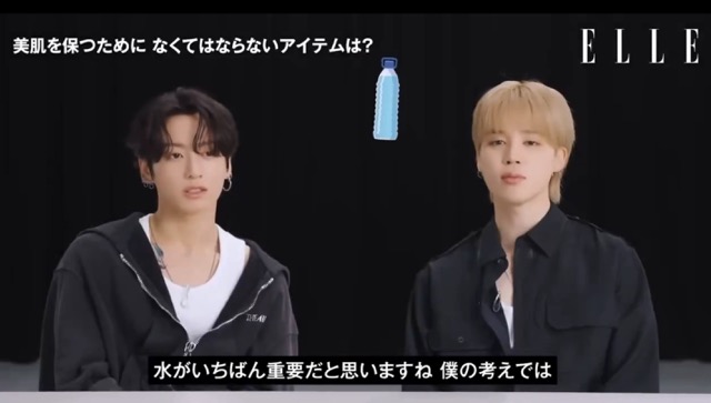 When asked, “What’s an essential item for keeping your skin beautiful?”, Jungkook went straight to the point, emphasizing: “First, keeping things that are bad for the body away, that made a fairly big difference for me. And then, lots of sleep and drinking lots of water..?”