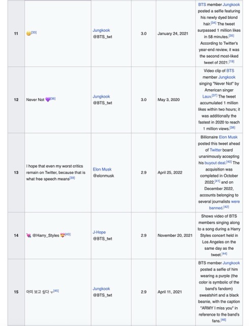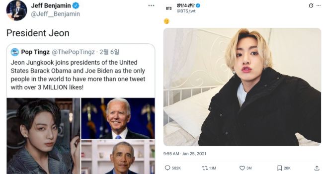 However, these figures still pale in comparison to a Twitter media record that Jungkook currently holds as the only Asian celebrity to do so. One of his single tweet since 2021 consisting of just an emoji garnered over 3 million likes. This achievement placed Jungkook alongside former U.S. presidents Joe Biden and Barack Obama as the only individuals whose tweets posted in 2021 ranked among the top 30 most-liked tweets of all time on the platform.