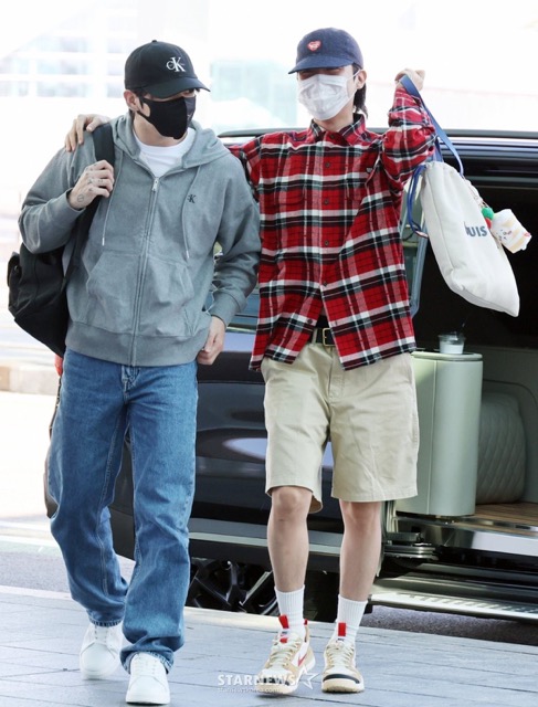 The two were reported to have departed from Incheon for their private schedules in the U.S. They looked striking even in casual, youthful outfits. Despite covering their faces with masks and baseball caps, their superstar aura was impossible to hide.