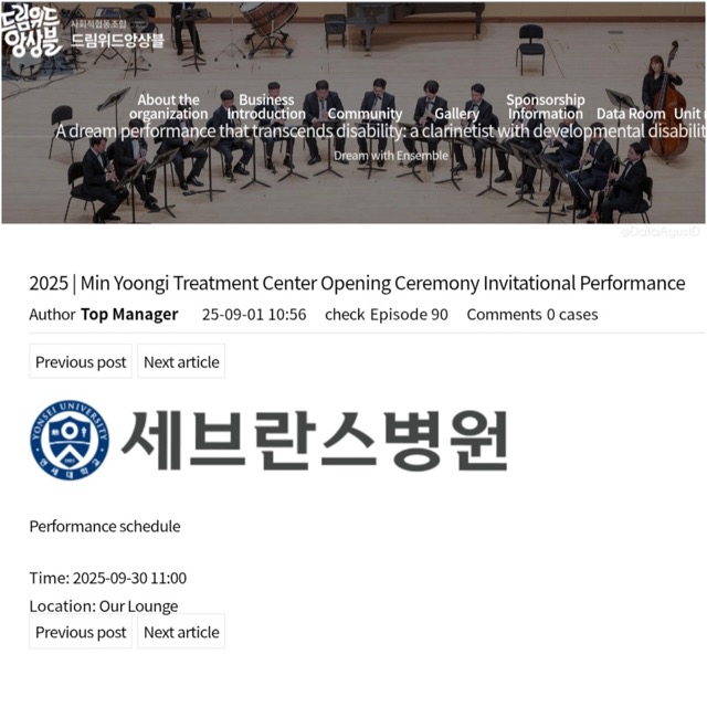 Notably, the event will feature a performance by Dream With Ensemble, кσяєα’s first clarinet group comprised of musicians with developmental disabilities — a truly meaningful way to mark the beginning of the center’s mission. In addition, fans are eagerly anticipating that SUGA may appear or even perform together with the children he has been working with at the hospital as part of the opening program.