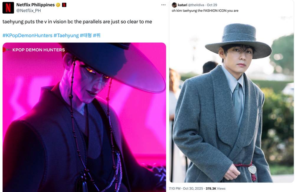 Furthermore, Netflix Philippines followed up by comparing two photos—one of the film’s main character, Jinu, and one of V at the event—highlighting the astonishing resemblance between the two iconic figures. The post included the caption: “taehyung puts the v in vision bc the parallels are just so clear to me,” sparking a huge reaction online.