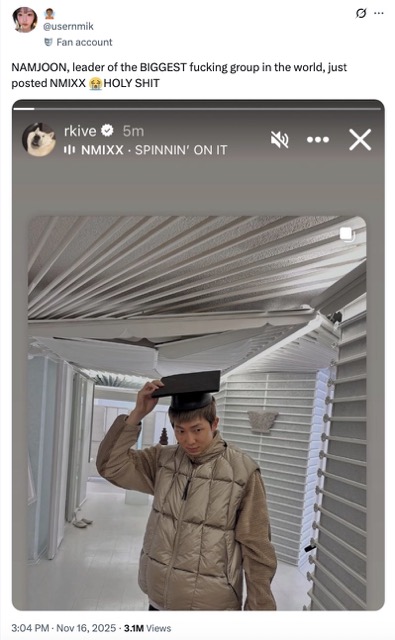 However, that joy didn’t last long. As the information spread and reached some other fandoms, negative reactions began to appear. A considerable number of people expressed annoyance, claiming that RM’s action was nothing worth making a fuss over. They mocked the excitement of NMIXX fans and even began to make snide remarks and personal attacks toward RM.