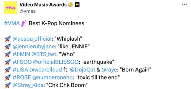 Voting for one’s favorite idols and artists at award shows is nothing unfamiliar to fans in general, and especially to K-pop fans. This is particularly true when it comes to a globally renowned award like the MTV Video Music Awards (VMAs), which has a history of over 40 years honoring the year’s most outstanding music videos across multiple categories.