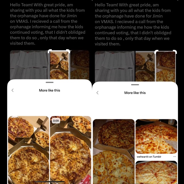 What stood out even more, however, was that some ARMYs discovered these actions might have been a scheme to make them appear as extreme fans—or even bait intended to tarnish Jimin and ARMYs’ reputation. Fans noticed that the food images used in the post were actually taken from Pinterest, from a user who regularly uploads food pictures, rather than being “snacks donated to orphans” as OP claimed.