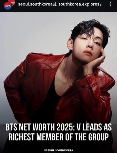 Specifically, in a post titled “BTS continue to shape global music and pop culture, and new estimates for 2025 reveal how much each member has earned,” published on the Seoul South кσяєα Instagram account, they presented estimated net-worth figures for each BTS member in 2025, compiled from several industry reports.