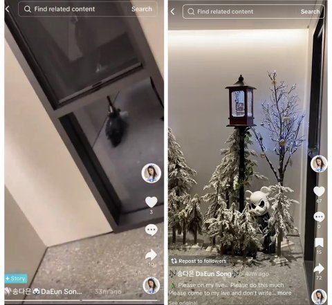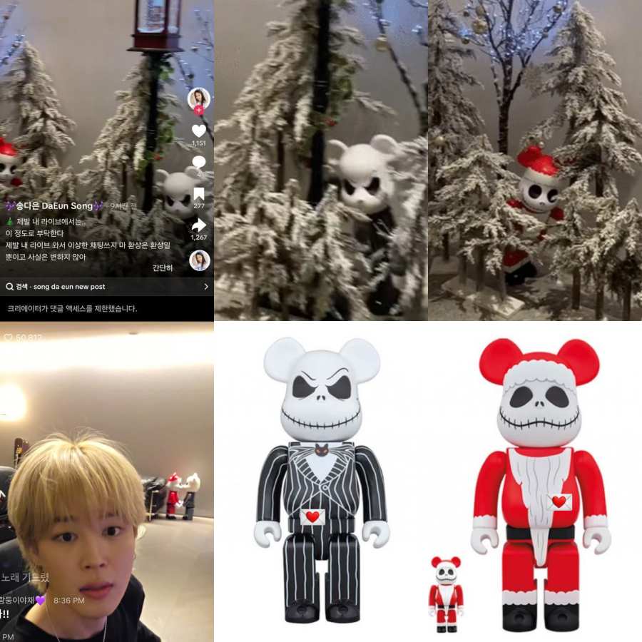 Specifically, on the 16th, Song shared a post asking people to stop speculating and making random comments while watching her live stream. Along with this caption was a video showing a Christmas-decorated area outside an apartment. Netizens immediately noticed two Bearbricks included in the decorations because they looked identical to the pair seen during a recent live stream of Jimin.