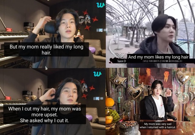 In fact, this is not the first time SUGA has said that his parents are the reason he keeps his hair long. In a previous live broadcast, he once confessed, “Honestly, I don’t really care about the length of my hair, but my mom really likes my long hair. She was very sad when I cut it.” He has also mentioned this several times to fans in other moments.