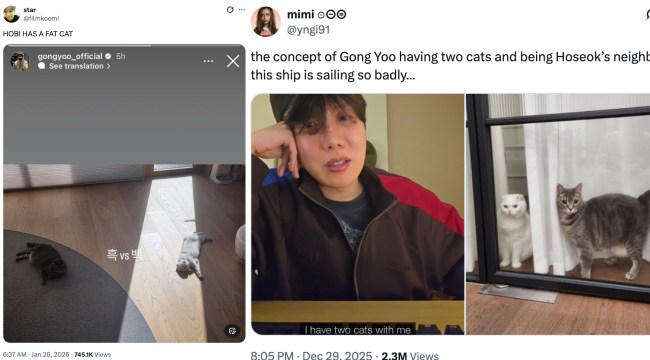 These details caused posts claiming that the two cats in Gong Yoo’s newly shared photo belong to j-hope—or that the two stars are raising the cats together as neighbors—to spread rapidly across social media, attracting million views and interactions. Reactions filled the comment sections, ranging from surprise to skepticism. Some were astonished to supposedly see j-hope’s cats for the first time, while others were confused about why Gong Yoo and j-hope would be raising cats together.