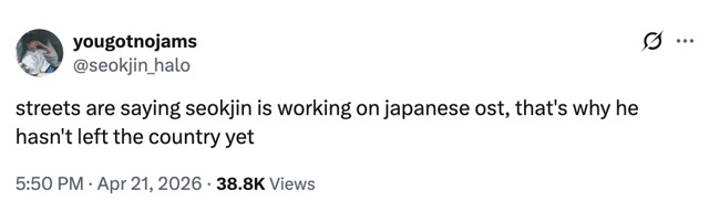 Not stopping there, also on the 22nd, a local newspaper reported that Jin had secretly visited a luxury hot spring inn in Izu and a nearby supermarket. It appears that he may be enjoying a rare vacation before resuming BTS’s demanding world tour. A local fan also reminded others: “So a Bunshun article came out saying Jin-kun is staying at a luxury inn in Izu… I wonder if it’s true. But even if it is true, please just leave him be. Please don't follow him around".