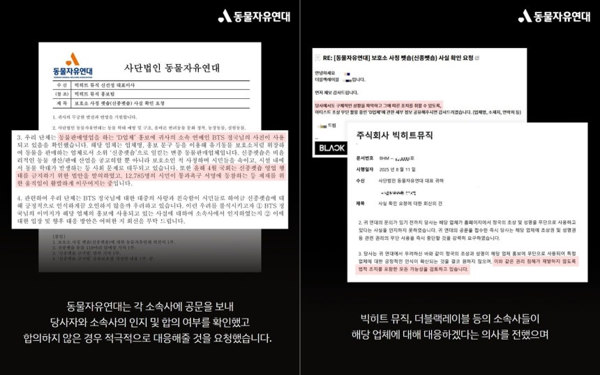 Once the issue came to light, the кσяєαn Animal Welfare Association sent official letters to each company, asking them to confirm whether they had consented to the use of their images, and to respond if they had not. BigHit Music was one of the companies that acted immediately after receiving the report. They demanded the removal of the image and issued an official statement denying that Jungkook was an ambαѕѕador for the brand.