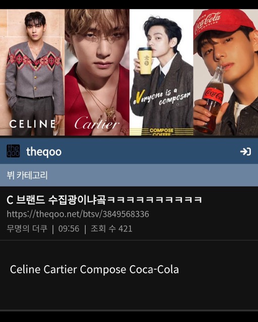 This marks the fifth major brand V has partnered with, and fans were quick to point out an interesting coincidence: four out of the five brands V has signed with start with the letter “C”—Celine, Compose Coffee, Cartier, and Coca-Cola.