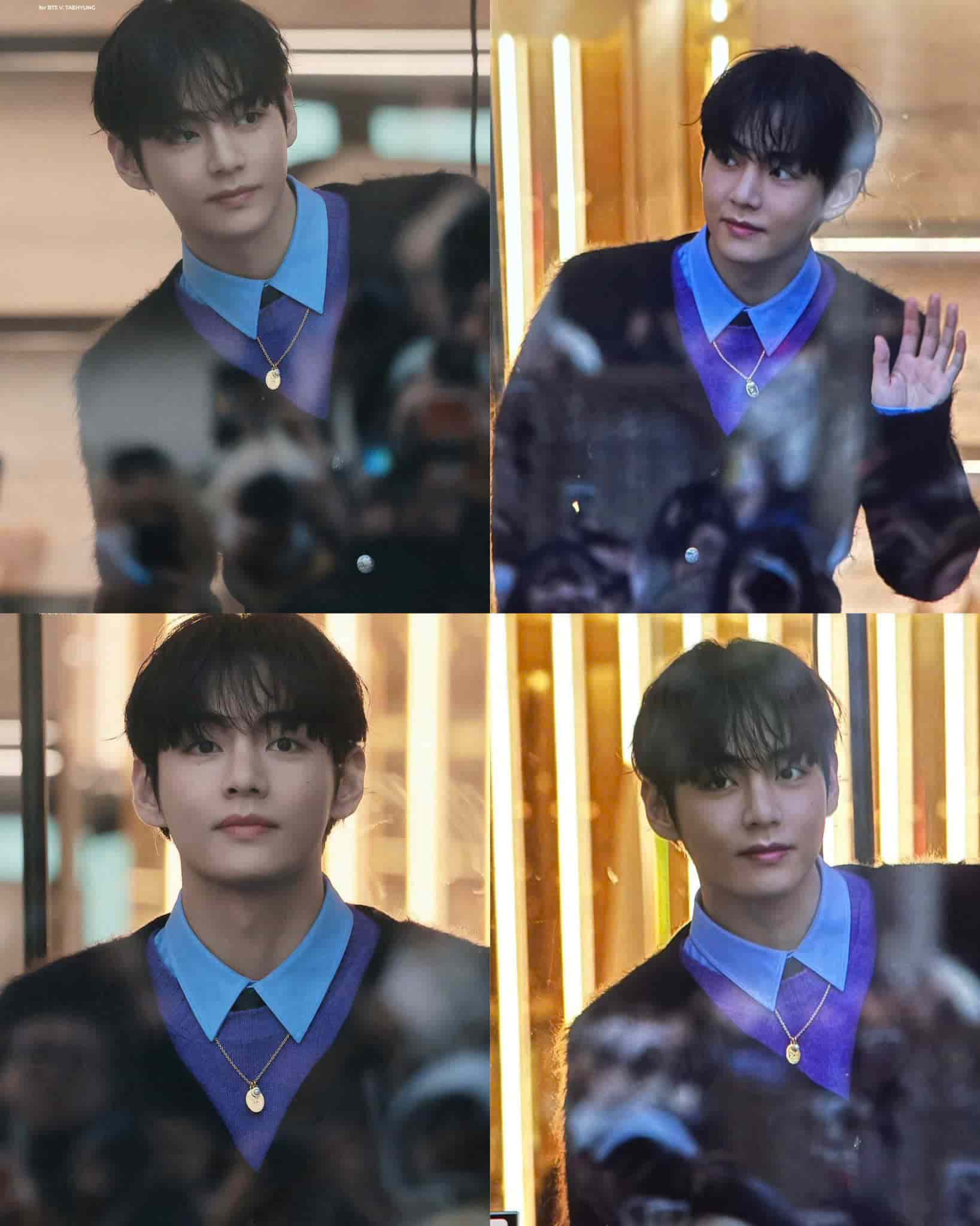 As CELINE’s current global ambαѕѕador, V was naturally in attendance. He showcased his fall fashion style in a light blue shirt layered with a purple knit, a fur coat, wide brown trousers, and loafers, complemented by his flowing hairstyle and a gold necklace as a finishing touch. His refined yet modern look made the CELINE global ambαѕѕador stand out effortlessly. In particular, the way he enjoyed the event—with his signature sweet gaze and trademark “V” pose, as if welcoming the arrival of spring—left fans and the media unable to look away.