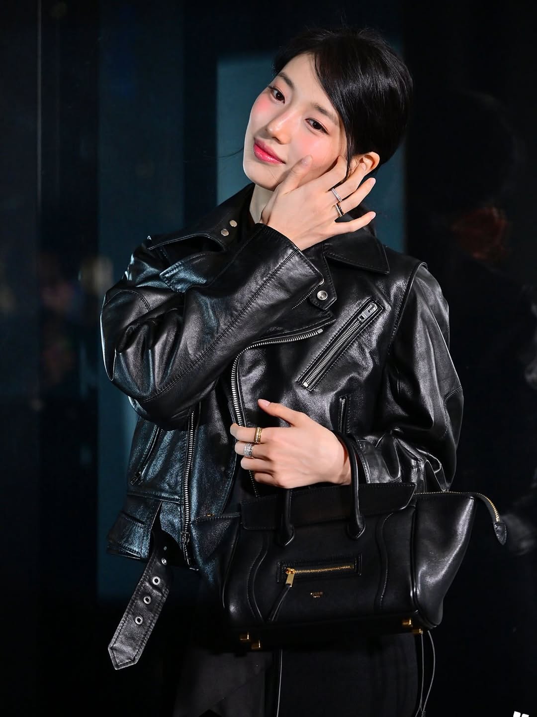 In addition to V, the event was also attended by actress Suzy, Park Bo-gum, and the group TWS (Shinyu, Dohoon, Youngjae, Hanjin, Jihoon, and Gyeongmin). Suzy’s appearance drew particular attention, as she has taken over the role previously held by BLACKPINK’s Lisa as one of CELINE’s three core ambαѕѕadors since November 2024. The actress wore an all-black ensemble paired with a cropped black leather jacket, creating a modern and edgy look. The outfit further highlighted her flawless skin, soft pink-toned makeup, and delicate facial features.