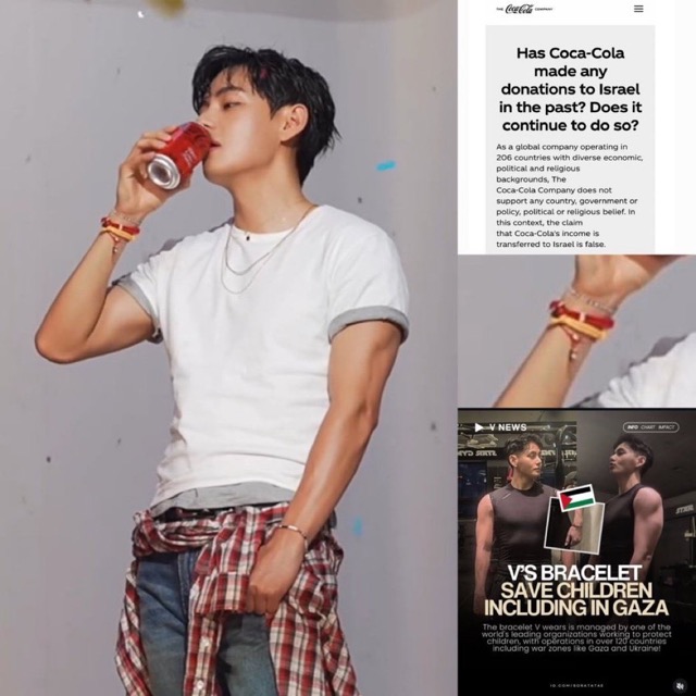 On the contrary, in the new promotional posters and campaigns by Coca‑Cola кσяєα featuring V, the idol was even shown wearing a SaveOne bracelet distributed by the organization Save The Children to support protecting children in the Gaza Strip, highlighting a gesture that reinforces his and brand's alignment with humanitarian values and global child protection efforts.
