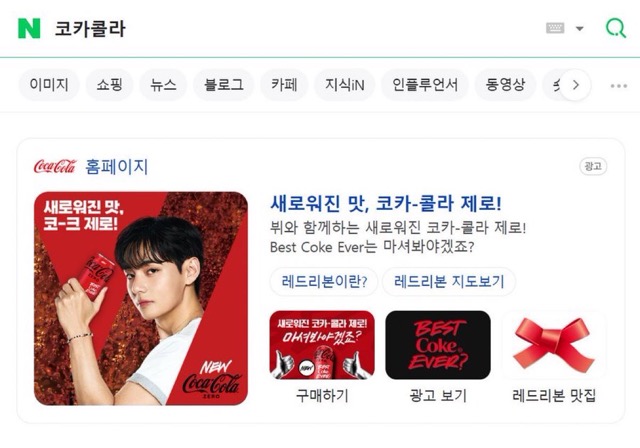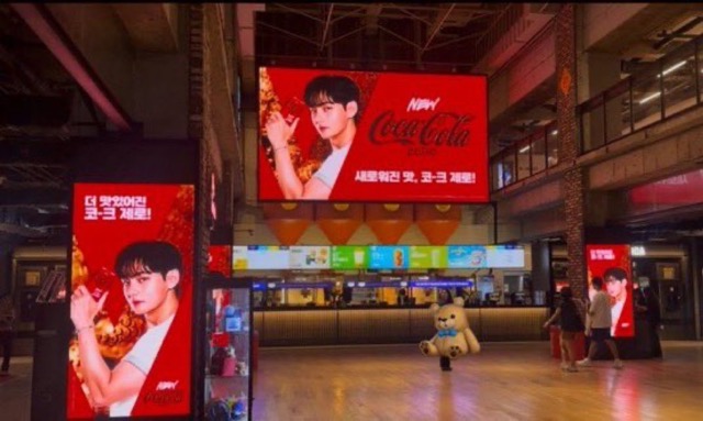Additionally, the famous beverage brand launched a major nationwide promotional campaign. In various videos circulating online, advertisements featuring V and the brand could be seen on digital screens in CGV cinemas, as well as on platforms such as Weverse and Idol Champ.